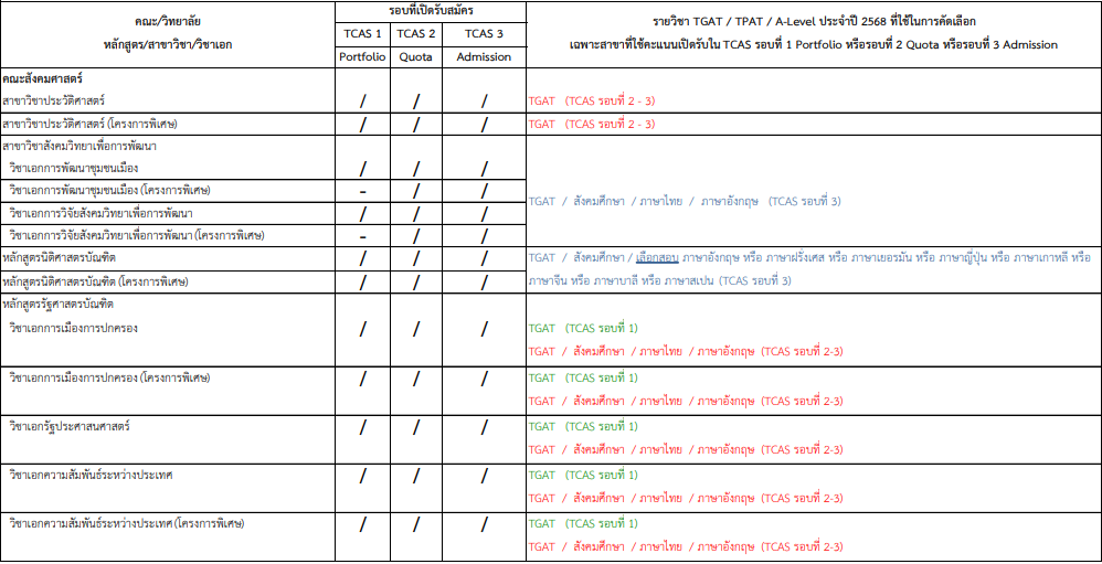- คณะสังคมศาสตร์ สาขาวิชาประวัติศาสตร์ (ภาคปกติ-ภาคพิเศษ) ใช้ TGAT