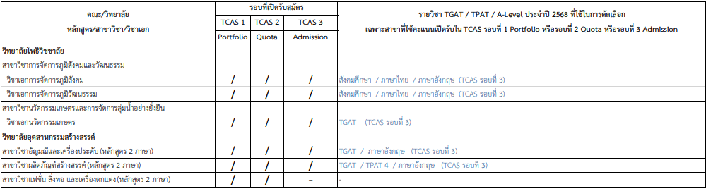 - คณะวัฒนธรรมสิ่งแวดล้อมและการท่องเที่ยวเชิงนิเวศ สาขาวิชาเทคโนโลยีสิ่งแวดล้อมและทรัพยากร ใช้ TGAT/TPAT3