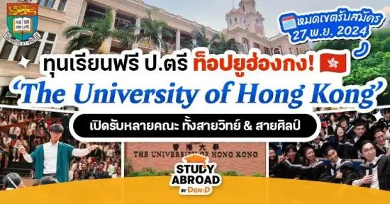 The University of Hong Kong หรือ HKU เป็นสถาบันอุดมศึกษาที่โดดเด่นด้านการวิจัยและเก่าแก่ที่สุดในฮ่องกง ปัจจุบันครองตำแหน่งมหาวิทยาลัยที่ดีที่สุดของฮ่องกง และอันดับ 17 ของโลก หลายหลักสูตรสอนเป็นภาษาอังกฤษล้วน ไม่ต้องมีพื้นฐานภาษาจีนก็สมัครเรียนได้!