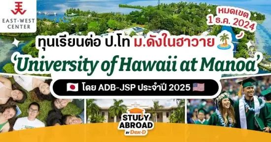 ตอนนี้ทาง East-West Center (EWC) ก็กำลังเปิดรับสมัครผู้รับทุนในโครงการ ADB-JSP เพื่อเข้าเรียนหลักสูตรระดับ ป.โท ณ University of Hawaii at Manoa ในเทอม Fall 2025