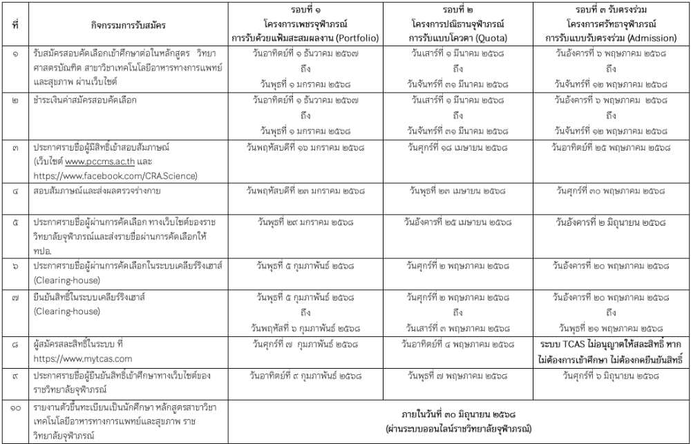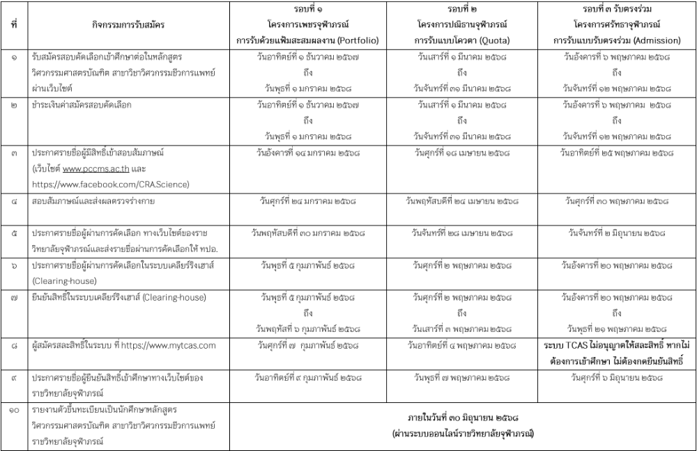 - รอบที่ 2 Quota โครงการปณิธานจุฬาภรณ์ 10 ที่นั่ง (ค่าสมัคร 250 บาท)
