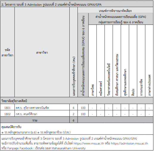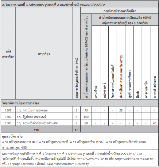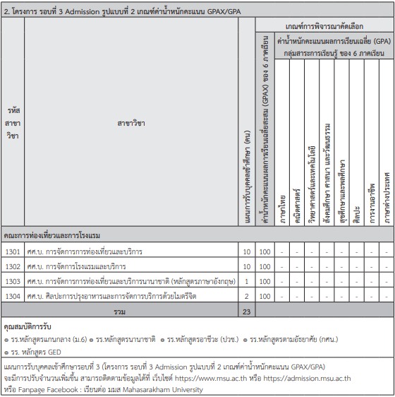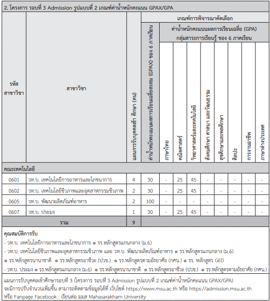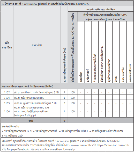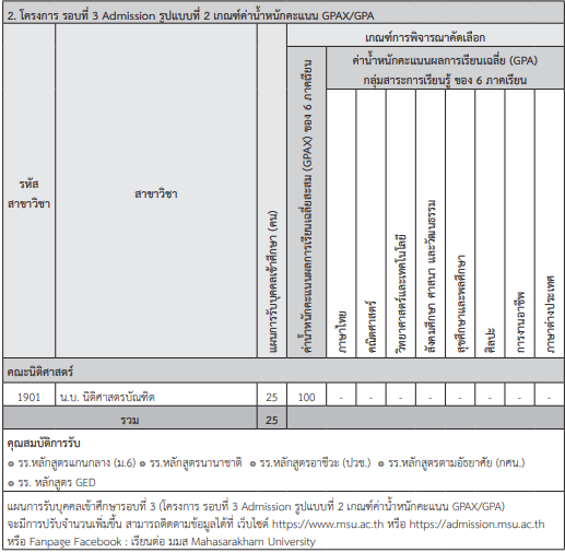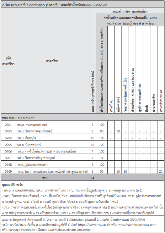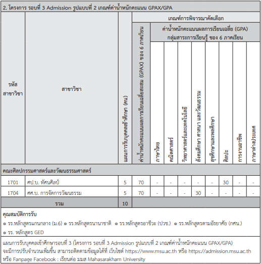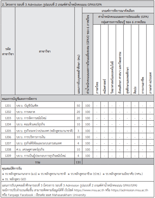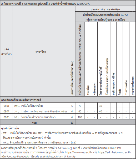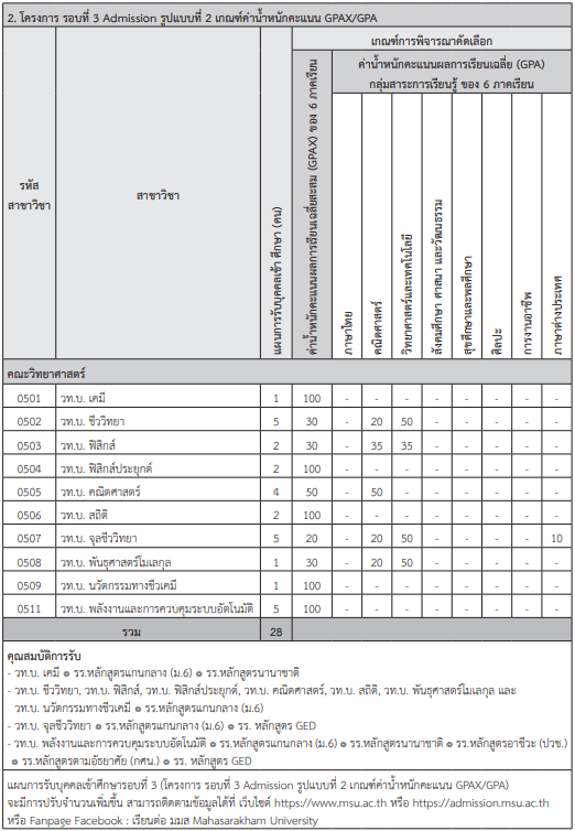 เกณฑ์รอบ Admission ม.มหาสารคาม