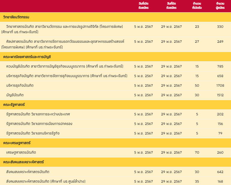 ยอดสมัครรอบ Portfolio ม.ธรรมศาสตร์ "บริหาร" มาแรง อันดับ 1