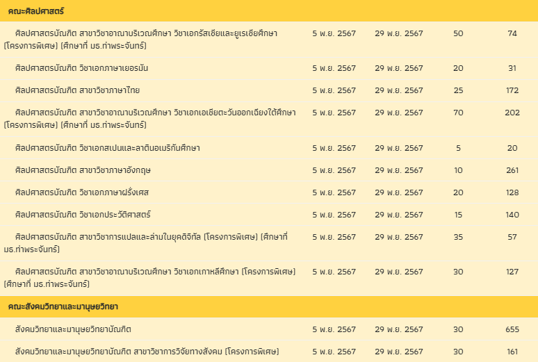 | 10 | พาณิชยศาสตร์และการบัญชี สาขาวิชาการจัดการธุรกิจแบบบูรณาการ (มธ.ท่าพระจันทร์) | 15 | 658 |