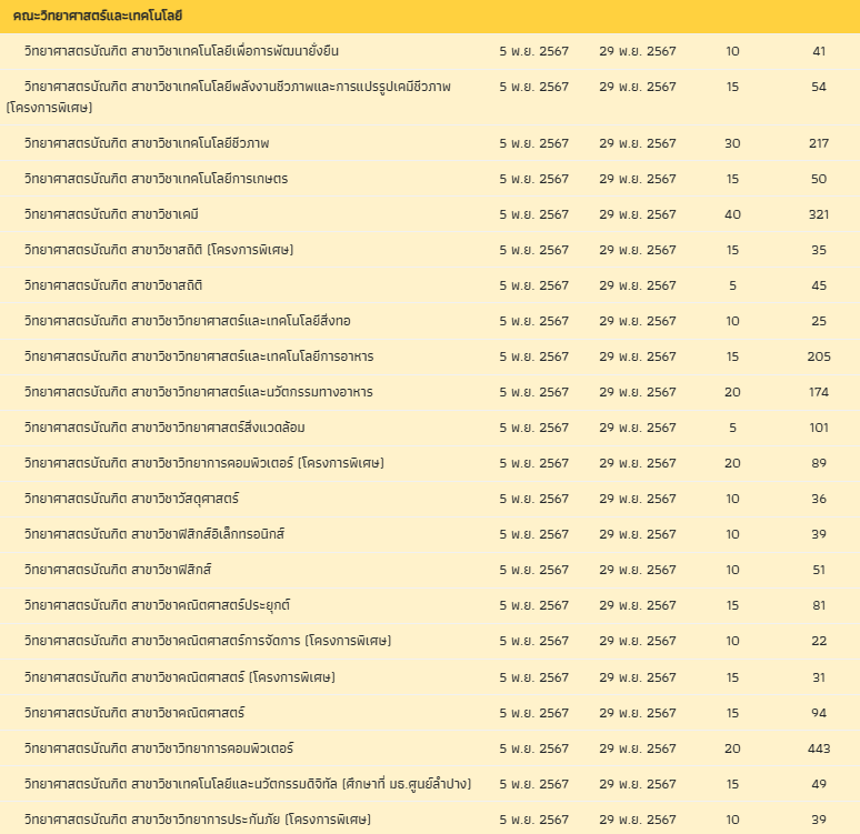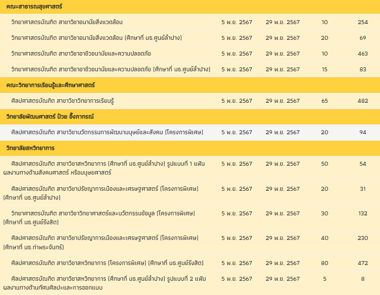| ที่ | คณะ/สาขา | จำนวนรับ | ผู้สมัคร |