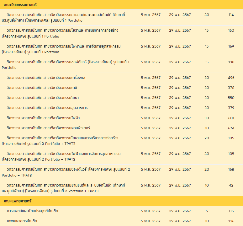 | 9 | วิศวกรรมศาสตร์ สาขาวิชาวิศวกรรมคอมพิวเตอร์ | 10 | 674 |