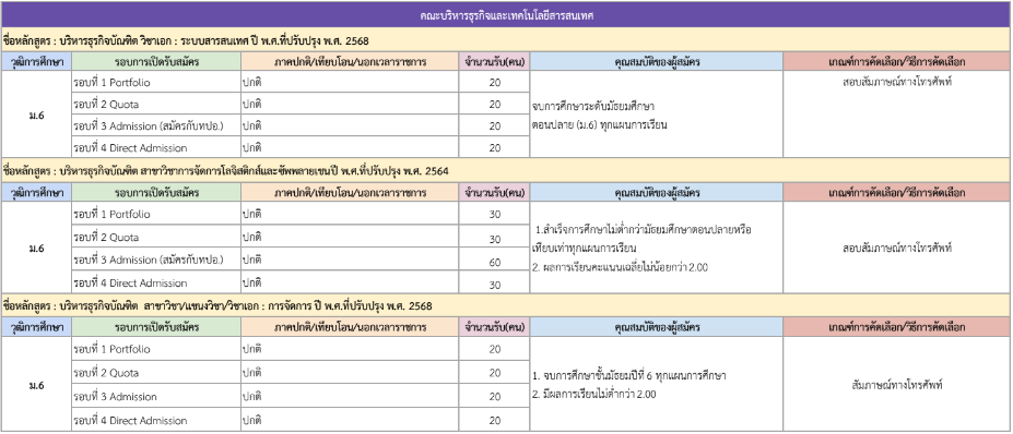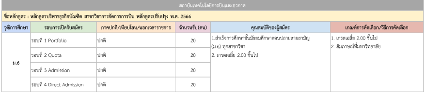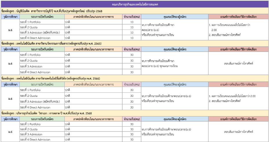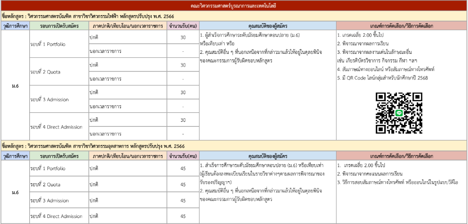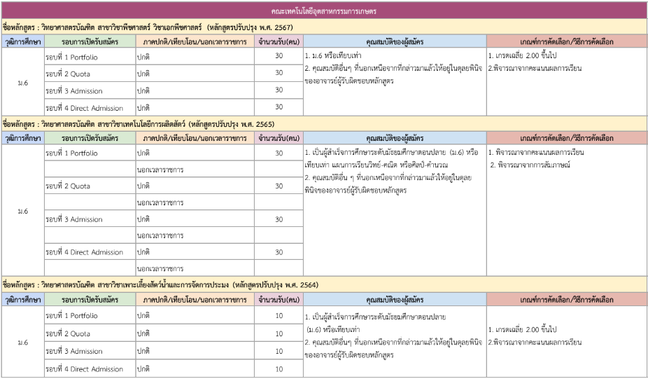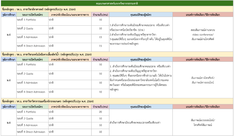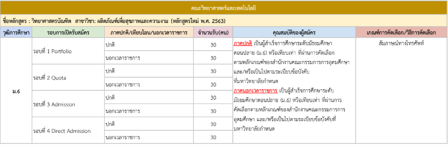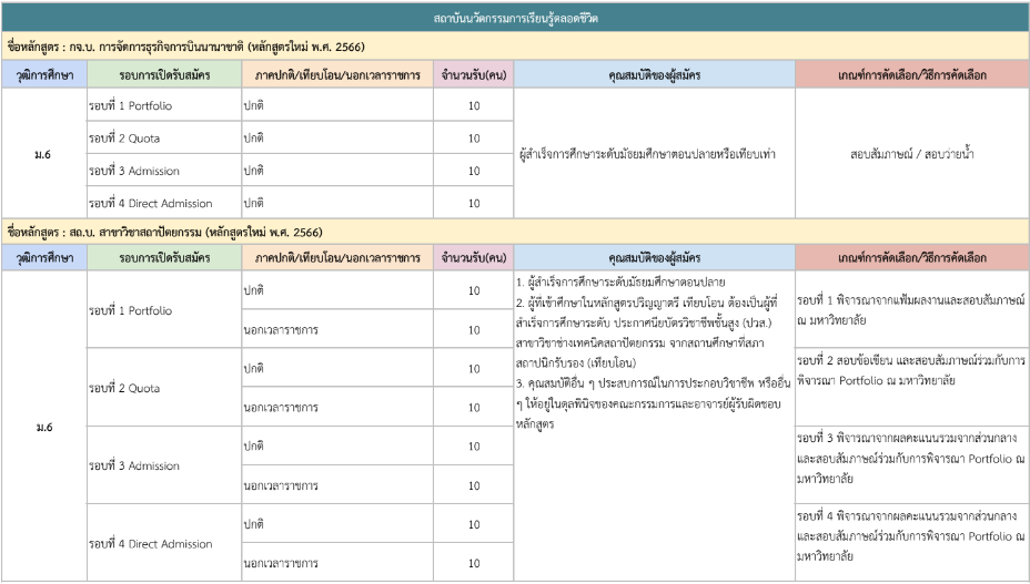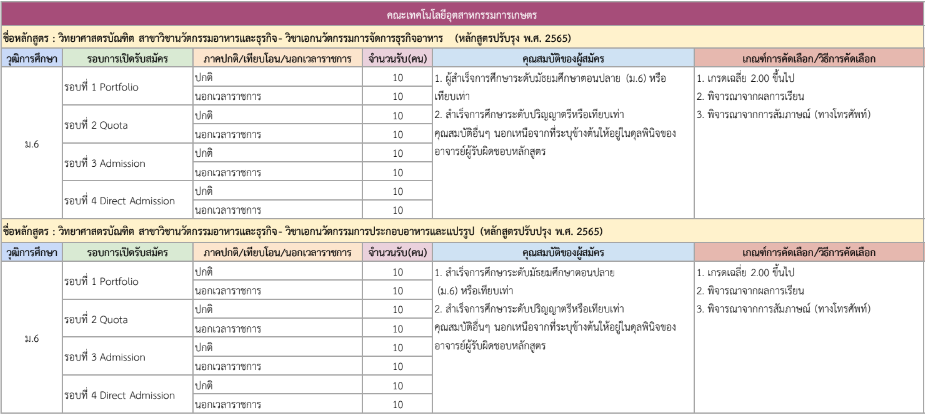 จากตารางข้างต้น มีแผนการรับแต่ละรอบให้น้องๆ ดูด้วย ดังนั้น ใครที่ยังไม่พร้อมเข้ารอบ Portfolio ก็สามารถดูรอบอื่นเป็นแนวทางได้เลย และสำหรับน้องๆ ที่เป็นวุฒิ ปวช. ก็มีโครงการเฉพาะเหมือนกัน ดูได้ที่ https://academic.rmutto.ac.th/?page_id=2396 หมดเขต 15 ธ.ค.นี้