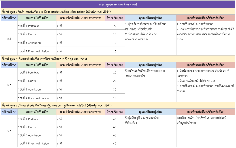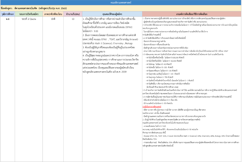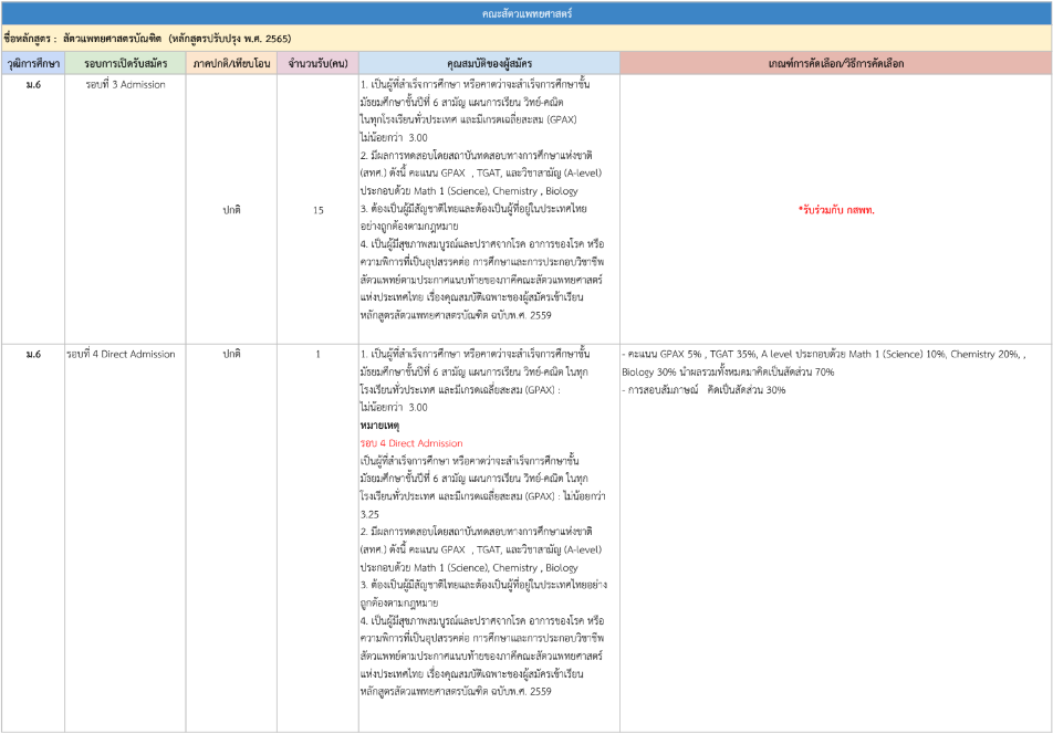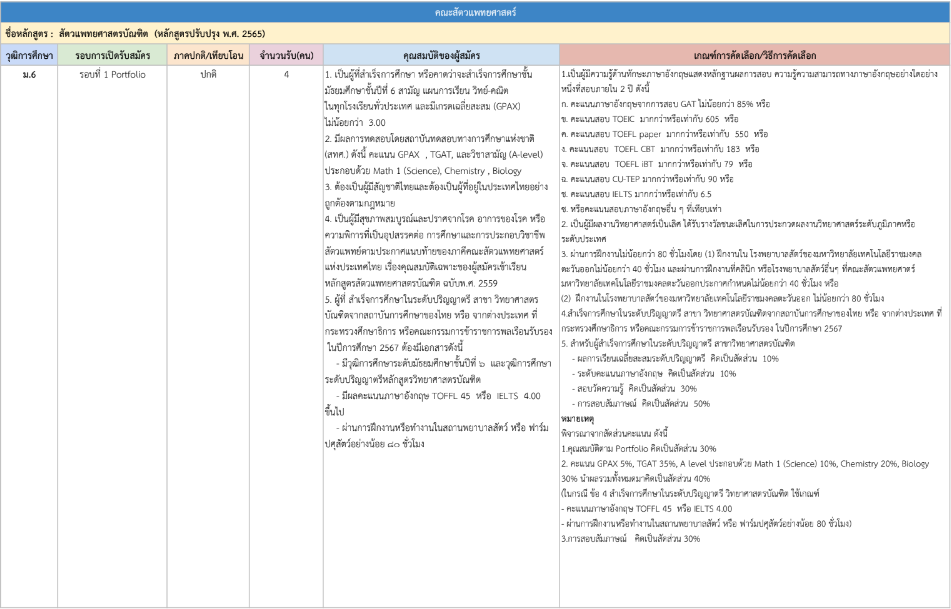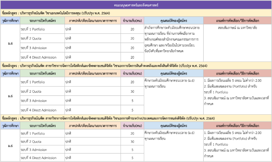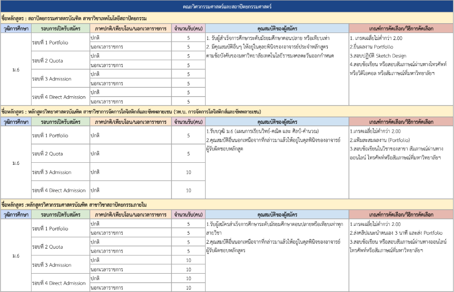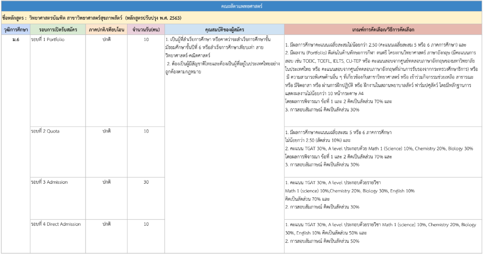 รายละเอียดคุณสมบัติและเกณฑ์คัดเลือก แยกตามคณะ พร้อมแผนการรับแต่ละรอบ