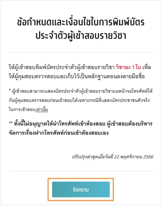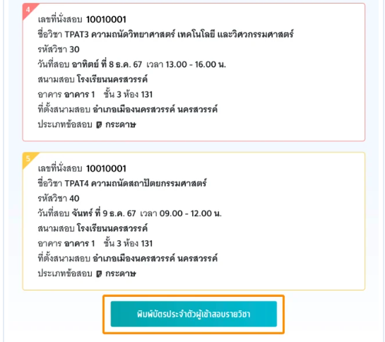 - พิมพ์ลงบนกระดาษ A4 และแสดงบัตรเข้าสอบให้กรรมการคุมสอบ