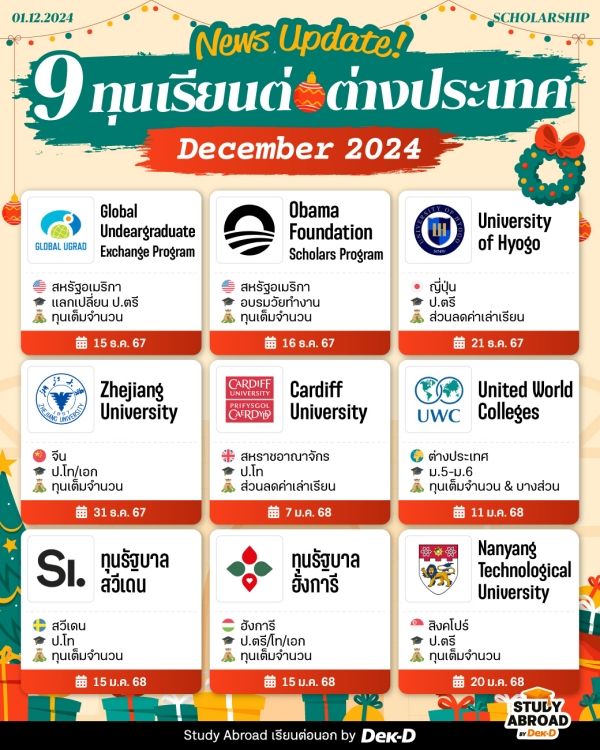 รวมทุนเรียนต่อนอก ธันวาคม 2024
