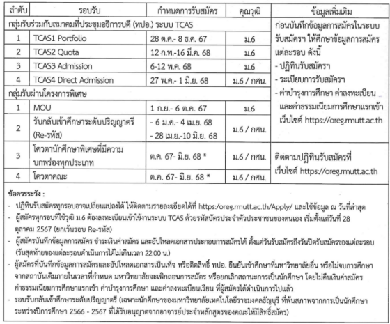 - สมัครผ่านเว็บไซต์ https://oreg.rmutt.ac.th/