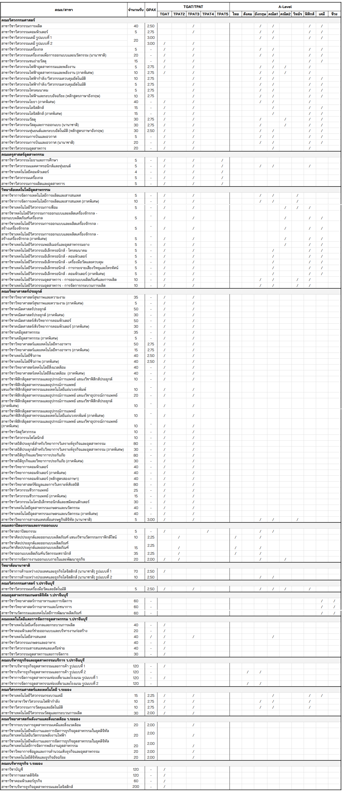 - เกือบทุกสาขาวิชาใช้ TGAT, TPAT3 ในการคัดเลือก