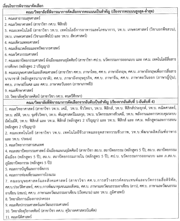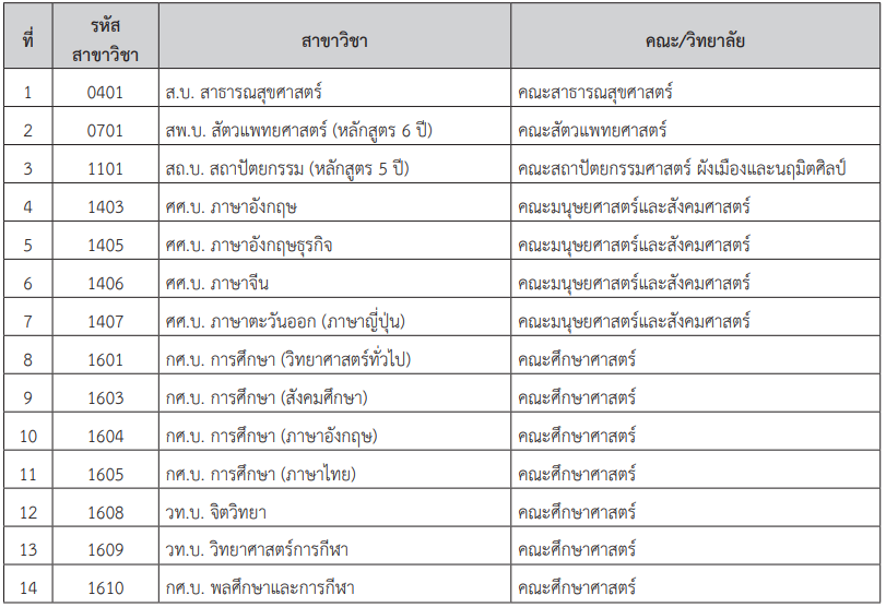 สาขาวิชาที่ต้องยื่นอันดับ 1 หรือ 2 เท่านั้น