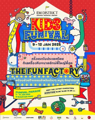 เตรียมตัวเลย! ในวันที่ 9 - 12 ม.ค. 2568 ตั้งแต่เวลา 10.00-21.00 น. ทาง EM DISTRICT เนรมิตศูนย์การค้าในเครืออย่างเอ็มโพเรียม (The Emporium) เอ็มควอเทียร์ (The EmQuartier) และเอ็มสเฟียร์ (The Emsphere) ให้เป็นดินแดนแห่งความสุขและสนุกสนาน จัดเต็มทั้งเครื่องเล่นและกิจกรรมมากมาย