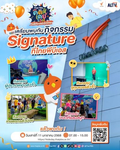 เตรียมตัว #เที่ยววันเด็กที่ไทยพีบีเอส โดยปีนี้เตรียมจัดกิจกรรมให้เด็กๆ ได้ร่วมสนุกกันแบบไม่มีกั๊ก ทั้งกิจกรรมบนเวทีและบูทรายการเด็กให้ได้เข้าร่วมและสัมผัสประสบการณ์อีกมากมาย โดยมีไฮไลต์กิจกรรม Signature พิเศษจัดเฉพาะที่ไทยพีบีเอสเท่านั้น