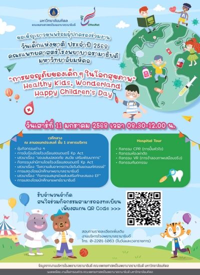 คณะแพทยศาสตร์โรงพยาบาลรามาธิบดี มหาวิทยาลัยมหิดล อาสาพาเด็กๆ ไปผจญภัยในโลกสุขภาพ กับ Hospital Tour พาไปเรียนรู้ผ่านกิจกรรม CPR (การปั๊มหัวใจ) กิจกรรมห้องผ่าตัด กิจกรรม VR (การจำลองภาพเสมือนจริง) และกิจกรรมทันตกรรม นอกจากนี้ยังมีเวทีเสวนาและซุ้มกิจกรรมอื่นๆ อีกมากมาย