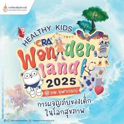 เพราะสุขภาพเป็นเรื่องใกล้ตัวสำหรับทุกคน! ราชวิทยาลัยจุฬาภรณ์ขอพาเด็กๆ มาร่วมผจญภัยในโลกสุขภาพกับกิจกรรมแสนสนุกสุดสร้างสรรค์ และเรียนรู้เทคโนโลยีการแพทย์และวิทยาศาสตร์สุขภาพที่กำลังมาแรงในยุคนี้ รวมถึงไฮไลต์สุดพิเศษอย่าง Hospital Tour (10.00 - 11.30 น.) เหล่ามาสคอตในดินแดนสุขภาพ ไม่ว่าจะเป็น หมีพึ่งxพิง ตะวันxฟ้าใส และ ผีเสื้อวิบวับxนกฮูกหลากสี ที่พร้อมพาเด็กๆ เดินทางผจญภัยในฐานต่างๆ เช่น เรียนรู้การทำ CPR ซึ่งมีประโยชน์มากๆ อีกด้วย