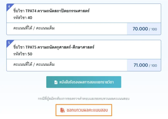 สวัสดีค่ะ น้องๆ รู้ผลคะแนน TGAT/TPAT2-5 กันแล้ว คะแนนเป็นยังไงกันบ้างคะ? ใครที่ได้คะแนนเป็นที่น่าพอใจ พี่มิ้นท์ก็ขอแสดงความยินดีด้วย แต่ที่ใครรู้สึก "เอ๊ะ!" ในคะแนนของตัวเอง อย่าเก็บความสงสัยไว้ สามารถยื่นคำร้องขอทบทวนสอบได้ แต่มีค่าใช้จ่าย 100-300 บาท และจะเห็นเฉพาะกระดาษคำตอบของตัวเองกับเฉลยเท่านั้นนะ ไม่สามารถตรวจสอบข้อสอบได้ ใครยอมรับเงื่อนไขนี้ได้ และอยากเช็กคะแนน ไปดูขั้นตอนกันเลย