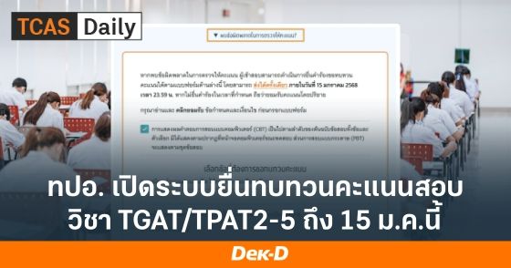 การขอทบทวนคะแนนสอบ TGAT/TPAT2-5 สำหรับน้องๆ ที่เข้าสอบแบบกระดาษ เริ่มได้แล้ว ตั้งแต่วันนี้ - 15 มกราคม 2568 ไปดูขั้นตอนกันเลย