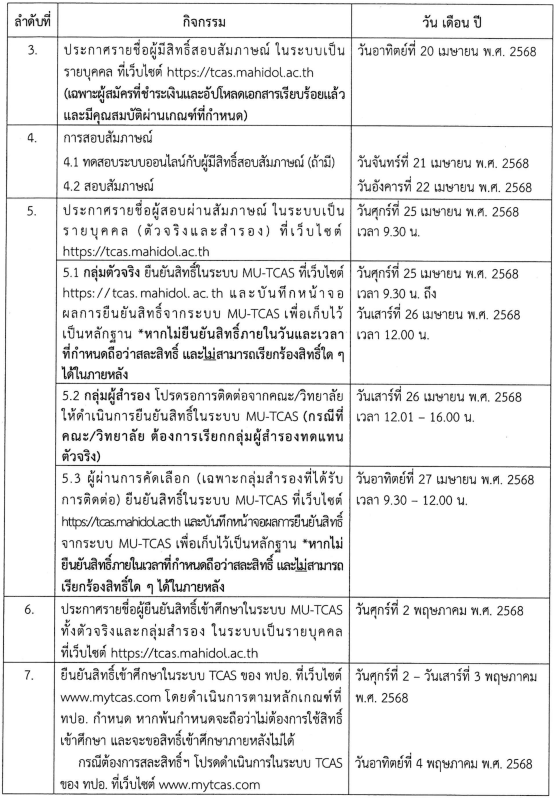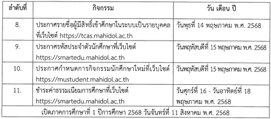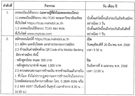 TCAS68 รอบ 2 : มหาวิทยาลัยมหิดล รับ 1,384 ที่นั่ง