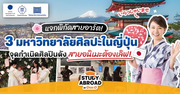 ศึกษาทุนเพิ่มเติมที่นี่!จบกันไปแล้วกับแจกพิกัด 3 มหาวิทยาลัยสาย Art ในญี่ปุ่น ใครที่สนใจหรือมีแพลนเรียนต่อ ก็อย่าลืมศึกษาข้อมูลหลักสูตรและเกณฑ์การรับสมัครอย่างละเอียดนะคะ สำหรับวันนี้พี่แอลก็ขอตัวลาไปก่อน ใครไม่อยากพลาดข้อมูลข่าวสารดีๆ เกี่ยวกับเรียนต่อนอกก็อย่าลืมติดตามช่องทางต่างๆ ของ Dek-D กันไว้ด้วยน้า แล้วเจอกันใหม่ค่า またね~