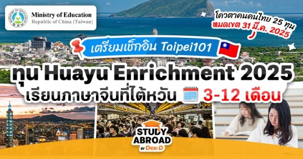 你好! ชาว Dek-D ทุกคนค่า ใครที่เพิ่มโอกาสให้ตัวเองด้วยการเรียน “ภาษาจีนกลาง” ที่นับเป็นภาษาทรงอิทธิพลของโลกโดยเฉพาะด้านเศรษฐกิจและการค้า พร้อมกับลองใช้ชีวิตในสังคมที่ผสมผสานความอินเตอร์ของ “ไต้หวัน” วันนี้ พี่ลูกหมูมีข่าวดีมาฝากว่า ทุนเรียนภาษาจีนระยะสั้น หรือ “Huayu Enrichment Scholarship (HES)” ประจำปี 2025 ของรัฐบาลไต้หวัน กำลังจะเปิดรับสมัครในเดือนกุมภาพันธ์ 2025 นี้แล้วค่ะ