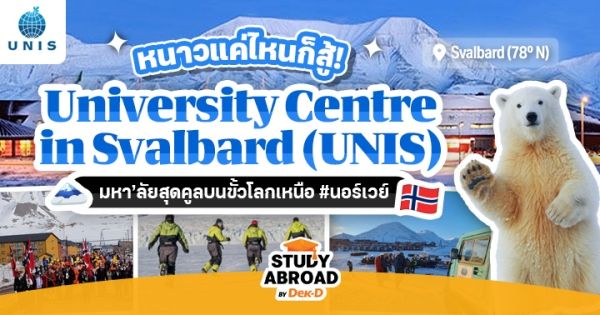 สวัสดีชาว Dek-D ทุกคนค่า~ ต้องบอกว่าฤดูหนาวประเทศไทยปีนี้สมศักดิ์ศรีมากเลยทีเดียวนะคะ ซึ่งนั่นก็เป็นผลมาจากปรากฏการณ์ลานีญานั่นเอง ถึงอย่างนั้นก็เชื่อว่าใครหลายๆ คนอยากให้อากาศหนาวๆ อยู่นานกว่านี้หน่อย ว่าแล้ววันนี้ พี่ลูกหมู เลยขอมาเอาใจคนชอบอากาศคูลๆ เพราะจะพาไปเปิดวาร์ปสถาบันการศึกษาจากประเทศนอร์เวย์ที่มีเสียงลือเสียงเล่าอ้างว่าเย็นที่สุดในโลก ที่นั่นก็คือ ‘University Centre in Svalbard’ ใครอยากสัมผัสบรรยากาศขั้วโลกเหนือแบบเรียนไปปากสั่นไป อยากรู้ว่าจะเย็นจนต้านทานไหวหรือเปล่า รีบไปทำความรู้จักที่นี่กันได้เลย~