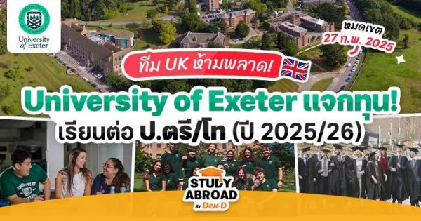 1. ทุนเรียนต่อ University of Exeter ประเทศอังกฤษ