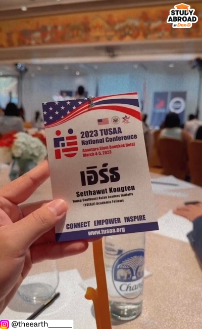 “ผมฝันอยากไปเปิดโลกต่างประเทศมาตั้งแต่เด็ก แต่รู้ว่าต้นทุนอาจไม่เท่าคนอื่น แถมเรียนต่างจังหวัดที่โอกาสน่าจะน้อยกว่าเมืองใหญ่ ก็เลยเลือกที่จะวิ่งเข้าหาโอกาส มากกว่าเพียงรอโอกาสที่จะเข้าหา ลุยกิจกรรมเต็มที่ตั้งแต่เข้ามหาลัยปีแรก พัฒนาทั้งตัวเองและสกิลภาษาอังกฤษให้พร้อมที่สุดเท่าที่จะทำได้”