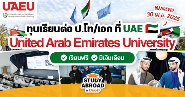 แต่หลายคนอาจยังไม่รู้ว่าด้านการศึกษาที่นี่ก็น่าสนใจเช่นกันค่ะ เพราะเป็นที่ตั้งของมหาวิทยาลัยชั้นนำหลายแห่ง เช่น United Arab Emirates University (UAEU) หรือ Khalifa University รวมถึง ‘United Arab Emirates University’ ที่กำลังเปิดรับสมัครนักศึกษาใหม่ระดับ ป.โท/เอก เทอม Fall ปี 2025 อยู่ในตอนนี้ และความที่เป็นประเทศร่ำรวย แน่นอนว่าก็มีทุนสำหรับนักเรียนต่างชาติแบบจัดเต็มสุดๆ // ว่าแล้วก็ตามพี่ลูกหมูมาเช็กข้อมูลกันต่อเลยค่า~