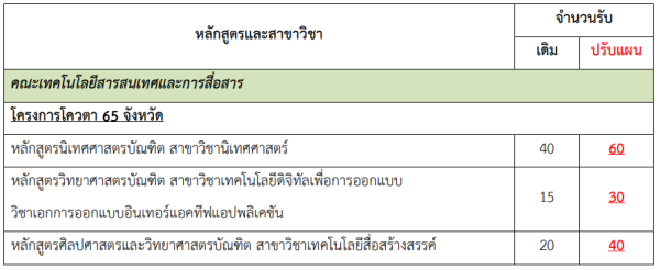 - คณะเทคโนโลยีสารสนเทศและการสื่อสาร เพิ่มจาก 355 ที่นั่ง เป็น 410 ที่นั่ง