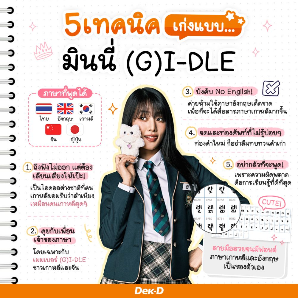 ข้อมูลจากhttps://www.scmp.com/what-know-about-gi-dles-minnie-thai-born-k-pop-idol-besthttps://www.dek-d.com/studyabroad/58703/มินนี่เป็นตัวอย่างของความมุ่งมั่น ตั้งใจ ความพยายาม และไม่ย่อท้อต่อความฝัน น้องๆ ชาว Dek-D คนไหนที่มีความฝัน หรือกำลังเรียนภาษาอยู่ ก็ลองนำเทคนิคดีๆ ของมินนี่ไปใช้กันได้ ใช้แล้วได้ผลลัพธ์ยังไง อย่าลืมมารีวิวกันด้วยนะคะ สู้ๆ