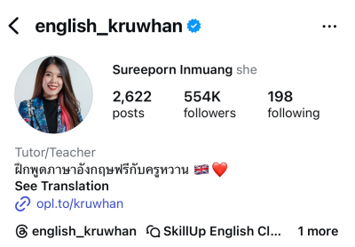 เริ่มต้นฝั่ง IG กับ ‘english_kruwhan’ เพจสอนภาษาอังกฤษคุณภาพเน้นๆ จากครูหวาน บอกเลยว่าปังมากเพราะเขาได้รับรางวัล Best Creator Performance on Social Media สาขา Knowledge & Education โดยในเพจก็จะมีทั้งแจกคำศัพท์ ประโยคที่ใช้ในชีวิตประจำวัน สอนไวยากรณ์แบบเข้าใจง่าย รวมถึงแปลบทพูดจากเหล่าเซเลบคนดังก็มีเหมือนกัน กดฟอลไว้ได้ความรู้แบบจัดเต็มเลยค่ะ