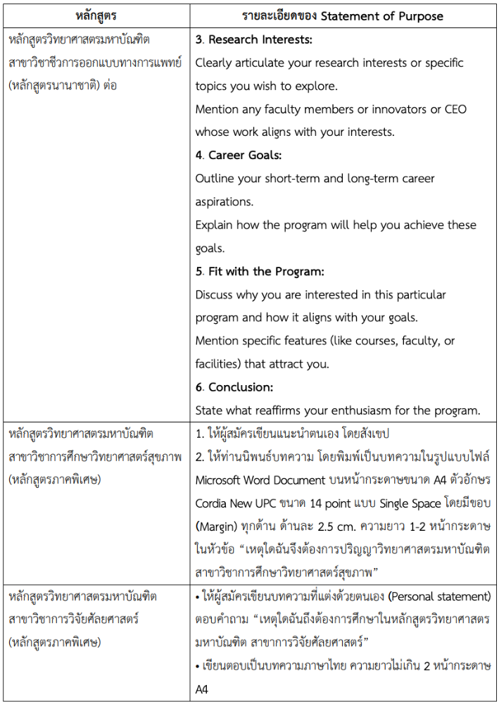 รายละเอียด Statement of Purpose ของหลักสูตรแพทยศาสตร์ศิริราชพยาบาล