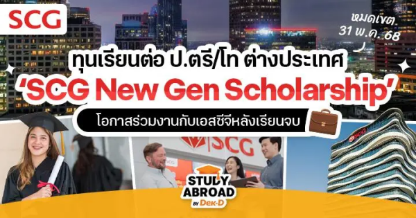 ทุนการศึกษา ‘SCG New Gen Scholarship’ เป็นโครงการจากบริษัทชั้นนำอย่าง ‘SCG’ หรือ ‘บริษัทปูนซีเมนต์ไทย จำกัด มหาชน’ ที่เปิดโอกาสให้บุคคลทั่วไปได้เรียนต่อ ป.ตรี/โท ในสาขาและมหาวิทยาลัยที่ SCG กำหนดทั่วโลก ซึ่งในปีนี้จะเปิดรับสมัครถึง 31 พฤษภาคมเท่านั้น แบ่งเป็น 2 กลุ่มคือ