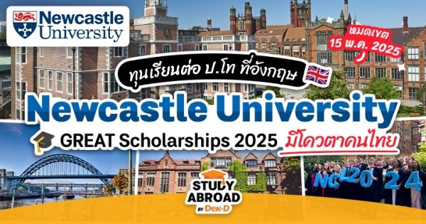 ในปีนี้ Newcastle University มีโควตาให้นักศึกษาจากประเทศไทย, เม็กซิโก และตุรกี ประเทศละ 1 ทุน สำหรับเรียนต่อระดับ ป.โท หลักสูตร 1 ปี (Postgraduate taught course) สาขาใดก็ได้ที่เปิดสอนในเทอม September 2025