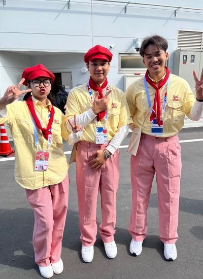 พี่ฟลุ๊ค ตัวแทนจากทีมฝึกงานที่ World Expo 2025 Osaka Kansai ทำงานเป็น Customer Service คอยแนะนำให้ข้อมูลต่างๆ ที่อยู่ใน ORA Gaishoku Pavilion『〜UTAGE〜』เล่าว่า “ดีใจมากที่ได้เป็นส่วนหนึ่งของงานระดับโลกแบบนี้ เป็นโอกาสดีเพื่อเรียนรู้การทำงานจริง ได้เจอผู้คนจากหลากหลายประเทศ ได้ใช้ภาษาในสถานการณ์จริง และการทำงานเป็นทีมทำให้เข้าใจระบบการจัดการแบบญี่ปุ่นซึ่งมีความละเอียด การเรียนที่พีไอเอ็มช่วยปูพื้นฐานเรื่องการบริการและการสื่อสารได้ดี เพราะได้ฝึกงานทุกปีสร้างภูมิคุ้มกันก่อนออกไปใช้ชีวิตจริง มีหลักสูตรที่ส่งเสริมการใช้ภาษาอังกฤษและภาษาที่สาม รวมถึงการบริการที่ดีเยี่ยม ทำให้พร้อมสำหรับการฝึกงานต่างประเทศ และอาจารย์ก็สนับสนุนให้คำแนะนำเรื่องโอกาสฝึกงานในต่างประเทศอย่างเต็มที่”