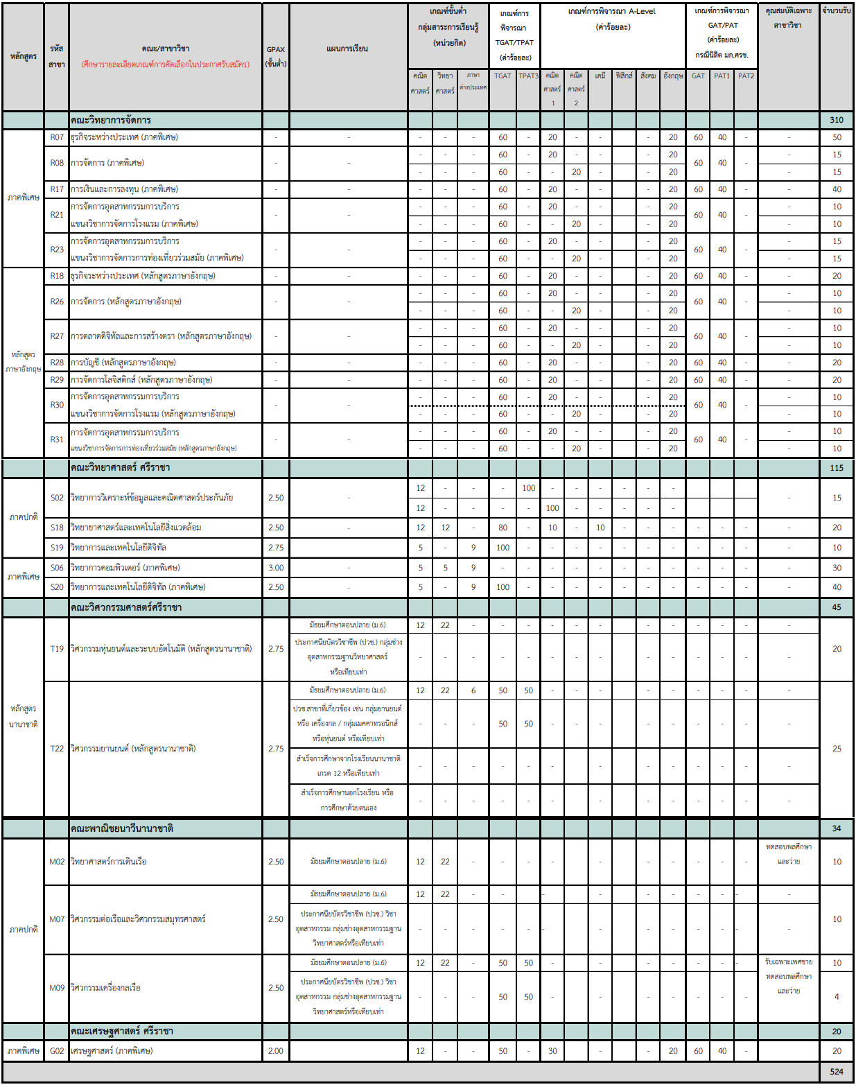 สาขาวิชาที่เปิดรับ