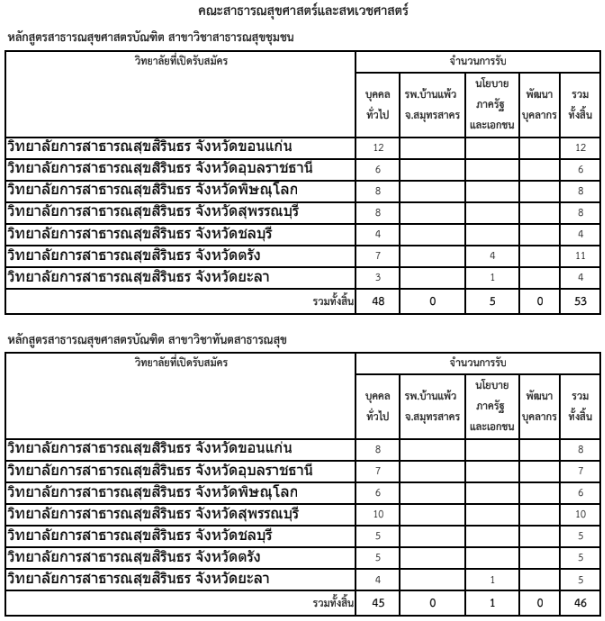 - สาธารณสุขศาสตรบัณฑิต สาขาวิชาสาธารณสุขชุมชน