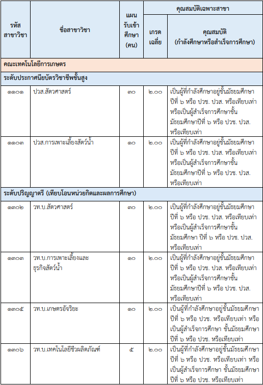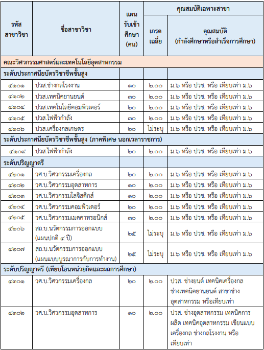 คณะ/สาขาที่เปิดรับสมัครและคุณสมบัติ