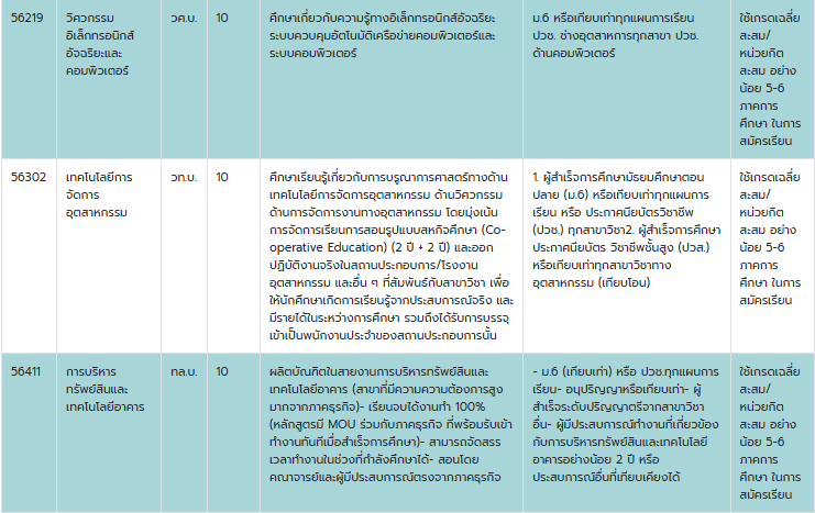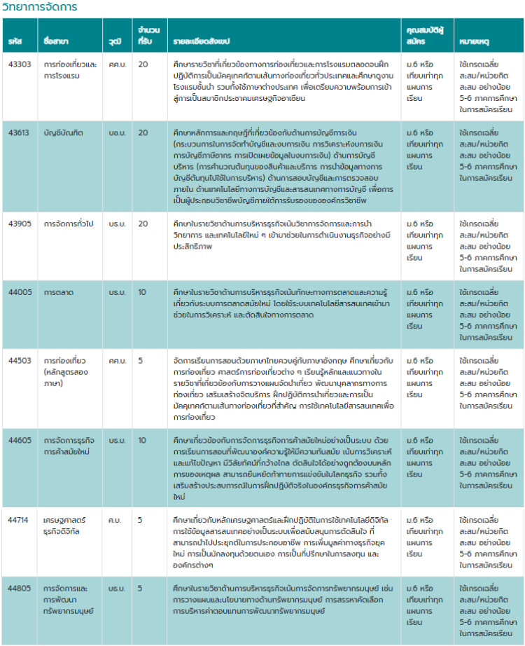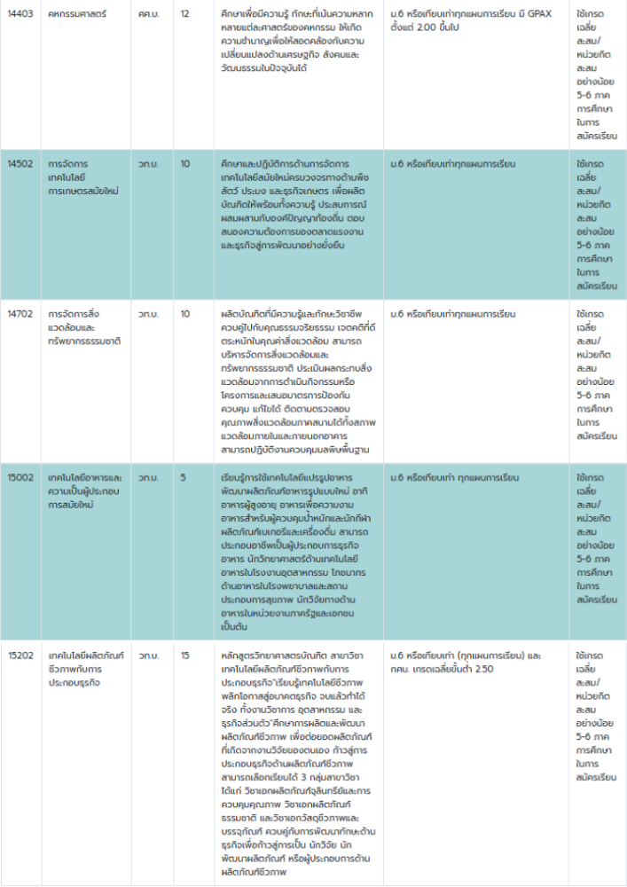 สาขาที่เปิดรับสมัครและเกณฑ์คัดเลือก