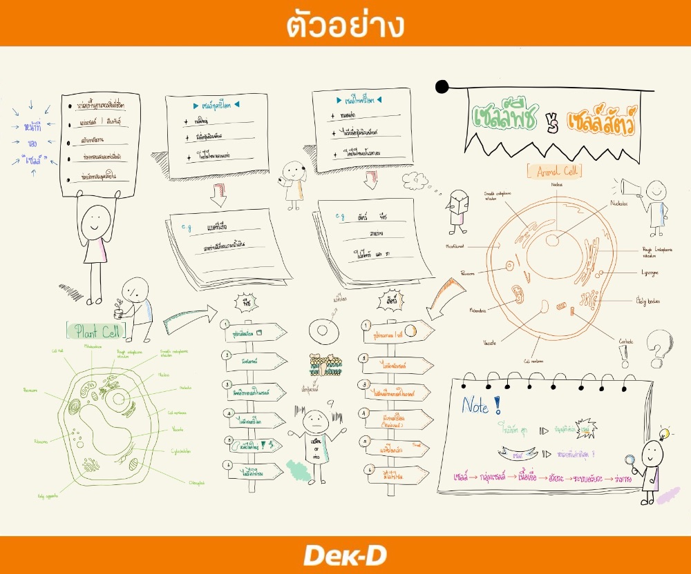 สำหรับน้อง ๆ ชาวDek-D พี่มีตัวอย่างการทำ Sketchnotes เรื่องเซลล์พืช และเซลล์สัตว์ง่าย ๆ มาฝากน้อง ๆ กันด้วยนะคะ