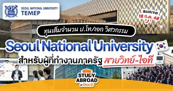อันยองชาว Dek-D ทุกคนค่า~ วันนี้พี่ลูกหมูมีข่าวดีมาฝากสำหรับใครที่สนใจจะไปเรียนต่อ ป.โท/เอก สายวิทย์-ไอที ที่เกาหลีใต้ ซึ่งเป็นประเทศที่เป็นตัวตึงมีในสายนี้สุดๆ เพราะว่าตอนนี้มี #ทุนเต็มจำนวน โครงการ ‘Global Digital Transformation Leadership Program (GDTL)’ จาก มหาวิทยาลัยแห่งชาติโซล (Seoul National University) ที่กำลังเปิดรับนักศึกษาใหม่ สำหรับเทอม Spring ปี 2026