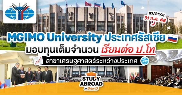 Привет สวัสดีชาว Dek-D ทุกคนค่า~ สำหรับใครกำลังเล็งๆ อยากไปเรียนต่อที่รัสเซีย และสนใจด้านเศรษฐศาสตร์และความสัมพันธ์ระหว่างประเทศ วันนี้พี่ลูกหมูก็มีข่าวดีมาแชร์กันค่ะ เพราะตอนนี้มหาวิทยาลัยชั้นนำของประเทศอย่าง "Moscow State Institute of International Relations" (MGIMO University) กำลังเปิดรับสมัครคนไทยรับ #ทุนเต็มจำนวน เรียนต่อระดับ ป.โท ด้านเศรษฐศาสตร์ระหว่างประเทศ และแนวโน้มเศรษฐกิจโลก