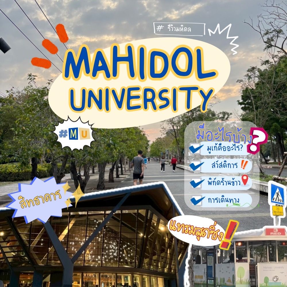 ข้อมูลจากhttps://mahidol.ac.th/th/services/https://mustudent.mahidol.ac.th/mulifepass/ไหนใครเป็นเด็ก MU มาแชร์ร้านเด็ด มุมนั่งชิล หรือใครเคยไปมูตรงไหนมาแล้วบ้าง มาแชร์ด้านล่างคอมเมนต์กันได้เลยค่ะ