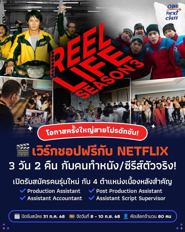 ️ เอาใจสายโปรดักชันและคนรักงานเบื้องหลัง! โดยเฉพาะคนรุ่นใหม่ไฟแรงที่มีความฝันอยากก้าวเข้าสู่วงการผลิตภาพยนตร์และซีรีส์ บอกเลยว่าโอกาสทองมาถึงแล้ว เพราะตอนนี้ Netflix กำลังเปิดรับสมัครผู้เข้าร่วมโครงการ REEL LIFE Season 3 เวิร์กช็อปฟรีสุดเข้มข้นแบบจัดเต็ม 3 วัน 2 คืน ที่จะพาไปเรียนรู้การทำงานจริงจากมืออาชีพในสายงาน เปิดเบื้องหลังกองถ่ายแบบ Exclusive สุดๆ // แถมยังมีโอกาสเข้าร่วม On The Job Training ฝึกงานกับพันธมิตรด้านการผลิตของ Netflix อีกด้วยนะ