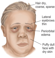 ผู้ใหญ่ : เหนื่อยง่าย น้ำหนักเพิ่ม ทนความหนาวไม่ได้ ความจำเสื่อม เป็นต้น จะเรียกกลุ่มอาการนี้ว่า มิกซีดีมา