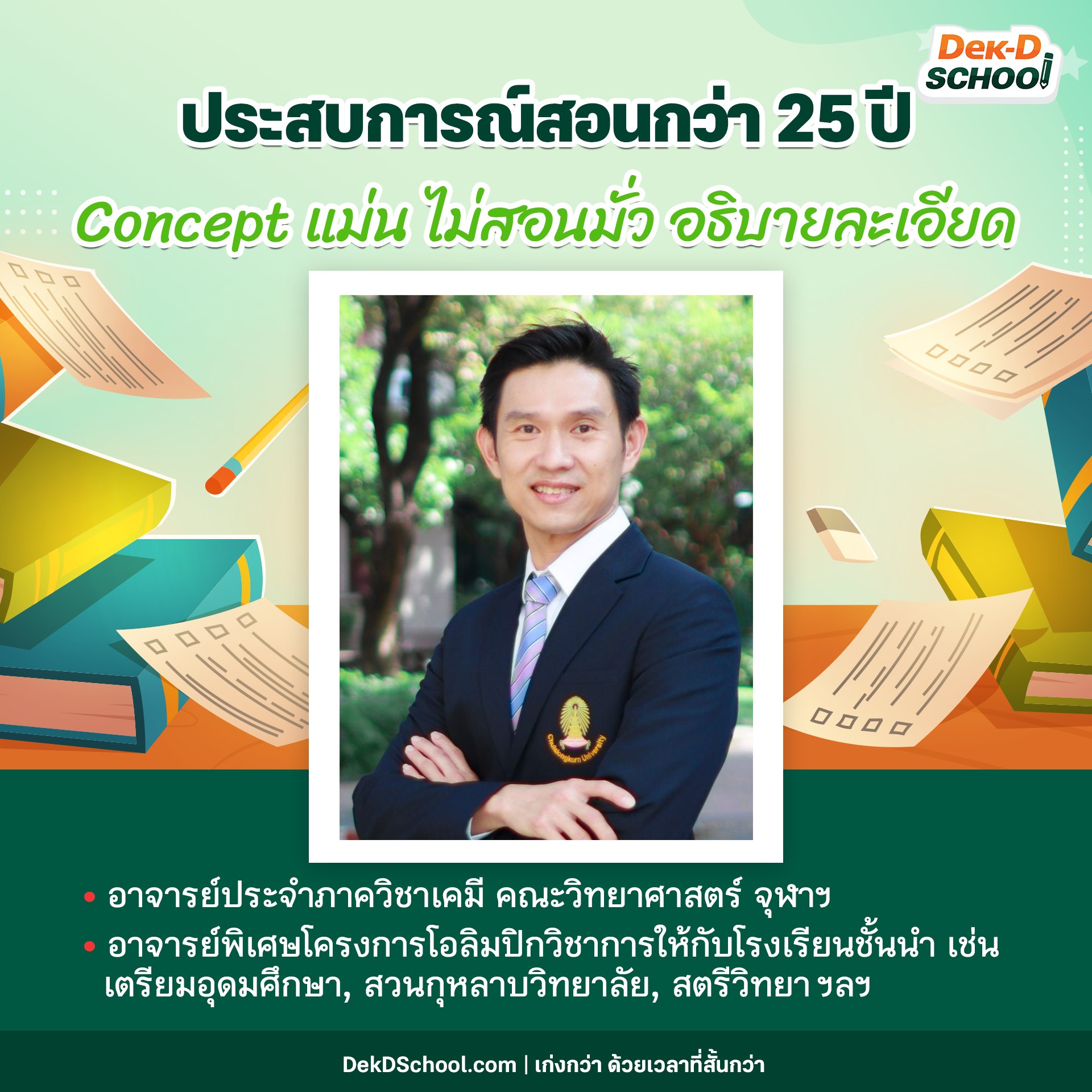 สำหรับน้องๆ ที่ยังไม่แม่นเนื้อหา ฟิตความพร้อมก่อนสอบด้วยคอร์สพิชิต TCAS เคมี A-Level สรุปเนื้อหาเคมี ม.ปลาย 3 ปี ครบถ้วน ตรงตามหลักสูตรล่าสุด สสวท. ตัวอย่างโจทย์จัดเต็มกว่า 340 ข้อ เทคนิคการทำโจทย์แบบเข้าใจจริง เน้นย้ำจุดที่พลาดได้บ่อยๆ คอร์สนี้สอนโดย อ.เต้ อาจารย์ประจำภาควิชาเคมี จุฬาฯ