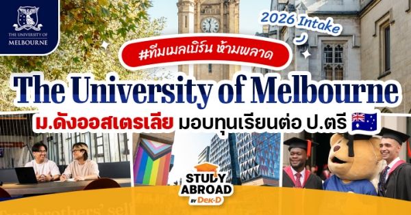 สวัสดีน้องๆ ชาว Dek-D ทุกคนค่า~ สำหรับใครที่อยากเป็น #ทีมออสเตรเลีย และกำลังหาทุนเรียนต่อ ป.ตรี ในปีหน้าอยู่ วันนี้พี่ลูกหมูมีข่าวทุนน่าสนใจมาเสิร์ฟให้อีกหนึ่งค่ะ! ครั้งนี้เป็นคิวของ ‘The University of Melbourne’ (UniMelb) ยูท็อปโลกจากประเทศออสเตรเลีย ซึ่งกำลังอยู่ในช่วงเปิดรับสมัครนักศึกษาใหม่สำหรับปี 2026 นั่นเองค่ะ