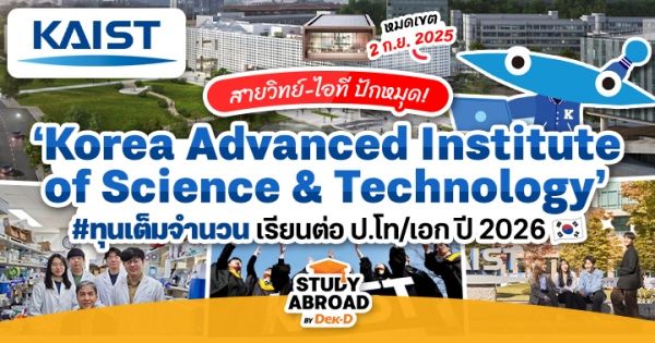 안녕! สำหรับชาว Dek-D ที่อยากเปิดประสบการณ์เรียนต่อที่ ‘เกาหลีใต้’ หนึ่งในประเทศที่ให้ความสำคัญกับการพัฒนาด้านวิทยาศาสตร์และเทคโนโลยี ตอนนี้สถาบันสายวิทย์ชื่อดังอย่าง ‘KAIST’ ได้ประกาศระเบียบรับสมัคร ป.โท & ป.เอก รอบเทอม Spring 2026 ออกมาแล้วค่ะ ที่สำคัญเค้ามีทุนเรียนฟรีพร้อมเงินเดือนมอบให้ด้วย รายละเอียดปีนี้จะเป็นยังไงบ้าง ตามไปส่องข้อมูลกันเลยค่ะ!